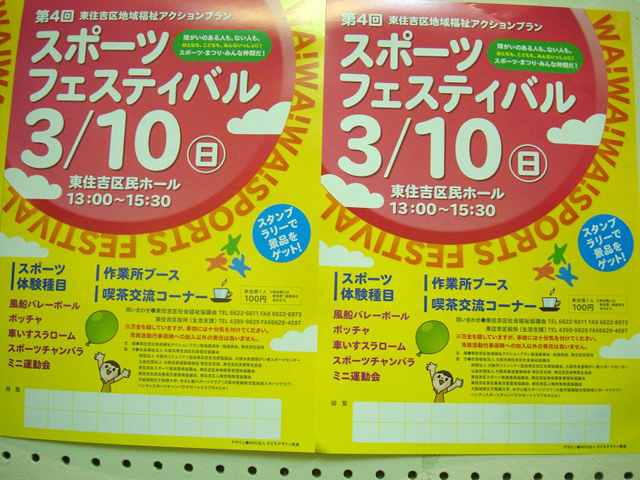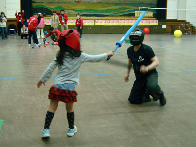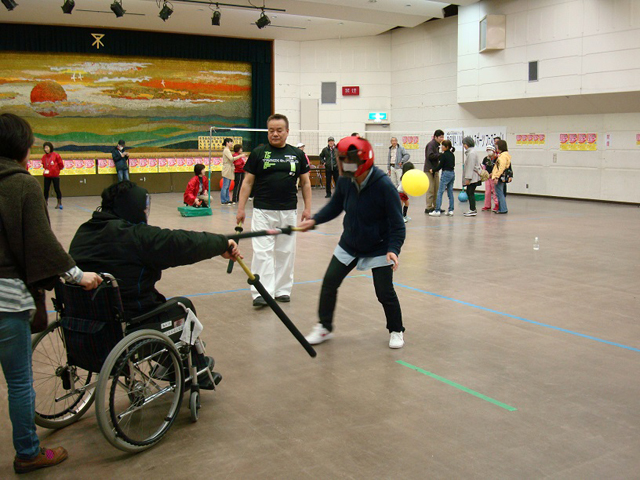 平成25年3月10日日曜日、私たちハンディスポーツチャンバラ体験道場といたしまして、大阪スポーツチャンバラ協会より、松本先生、山本先生に、ボランティア参加していただき、住吉第四回スポーツフェスティバルに初参加しました。